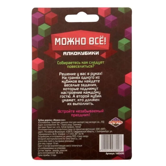 Купить кубик "можно все", алкокубики для принятия решений от 60 руб. с доставкой до пункта выдачи в Балашихе. Интернет магазин ДекаМаркет. Оплата при получении.